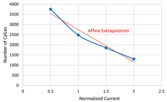 As for the BAT, the behavior of the aging process, considering the load changes amplitude, can be linearized using a Whöler curve to consider the load change effect on the aging process (Figure 10).