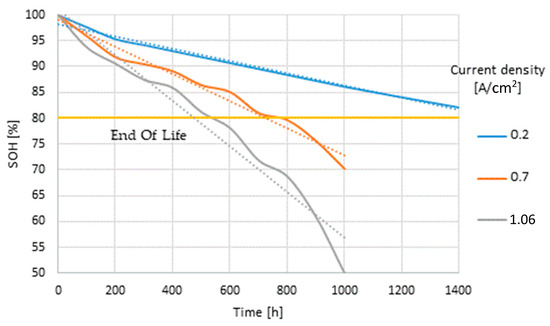 The EOL of FC in automobile applications is commonly determined by an SOH of around 80% to ensure safe operating conditions.