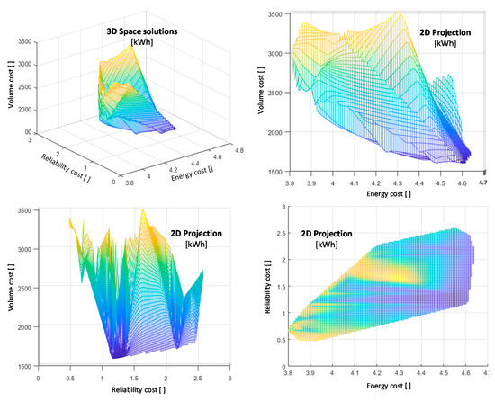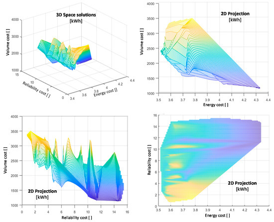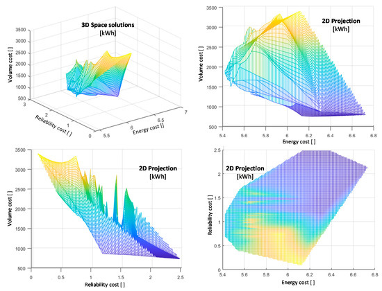 The proposed decision support tool was tested by an extensive simulation using the MATLAB/SIMULINK environment (R2018a, MathWorks, Natick, MA, USA); the hardware was a core i7 at 3.2 GHz with 16Go of RAM. The study was carried out with three performance indexes (energy consumption, reliability, volume), for which the results involve three-dimension mapping. It is realized for a ponderation from 0% to 100% with a step of 1% for three different cycles WLTC, US Highway, US 06.