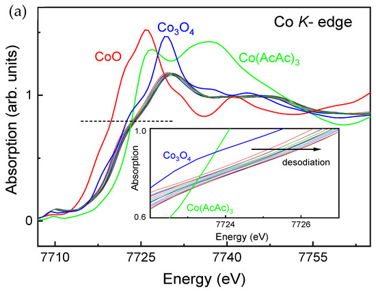 - Poltavets, V.V.; Croft, M.; Greenblatt, M. Charge transfer, hybridization and local inhomogeneity effects in NaxCoO2·yH2O: An x-ray absorption spectroscopy study. Phys. Rev. B 2006, 74, 125103. [Google Scholar] [CrossRef] [Green Version]