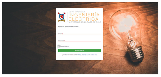 The front-end software was built on JavaScript by using the framework Angular, and it can be accessed in https://tesis.dispersiondigital.cl/#/session/login (accessed on 1 June 2021). Figure 15 shows a screenshot from the web front end.