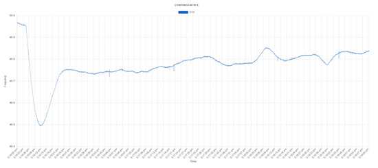 The power imbalance is a datum that is not directly obtained by the proposed tool. In order to obtain the value of the power imbalance, the Chilean National Electric Coordinator issues daily an operational report on the operator’s website. These reports specify the occurrence of all events, faults, and maneuvers during real-time operation. In this way, every time a frequency contingency is detected by the tool, the information of the imbalance must be obtained manually from the operator’s website. The research group is currently working on obtaining this information automatically for the operator’s SCADA.