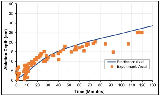 Comparison of SURC-2 experimental concrete axial ablation data with the developed model.