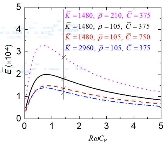 In the piezoelectric energy-harvesting systems, is an intrinsic normalized parameter that denotes the effect of matching between the external resistance , the equivalent capacitance of the PHE and the frequency of the excitation . In practical applications, the external resistance of the electronics embedded in the pavement, the excitation frequency of the traffic load, and the equivalent capacitance of the PHE codetermine the value of . For a typical road [50] with common traffic speed , the normalized parameters can be calculated as , , . Then, when the parameters of roads and traffic speed are changed, the , , would be changed accordingly. Therefore, the variance of the values of , , and can cover different kinds of roads under various traffic speeds. The influence of the system’s intrinsic parameter on the energy-harvesting efficiency is investigated under four typical types of roads (Figure 4). Here, the vertical coordinate denotes the energy harvested by all of the PEH units embedded in the pavement. In other words, the total length of these units equals the overall width of the pavement. For all these four distinct kinds of roads, the optimal , which is corresponding to the maximum harvested energy, is 0.75, 0.80, 0.85, 0.75, respectively (as shown by the four lines from up to down in Figure 4). Thus, in practical application, it is acceptable to make , since this can guarantee 95% of the highest energy harvesting efficiency for the four different road conditions (Figure 4). Generally, there are two ways to satisfy this criterion. ① Adjust the external impedance . Once the PEH unit is designed, the equivalent capacitance of the device is determined. Then, the external impedance should be adjusted according to the traffic speeds (such as expressway with high traffic speed, urban roads with low traffic speed) to ensure , since . ② Adjust the design of PEH units. Under certain circumstances, the external impedance of the electronics may be unchangeable. So, the equivalent capacitance of the PEH units should be adjusted to make . Since , the dimension of PHE (, , ) can be tuned to make satisfy this criterion.