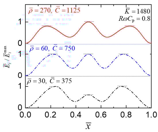 Equation (15) shows that when normalized energy is fixed, the energy harvested by PEH units would be linear to the energy coefficient . This would arrive at the following conclusions. ① Energy harvested by the PEH units is linear to the total volume of piezoelectric material (). Therefore, when evaluating the energy efficiency of different PEHs, the energy harvested per unit volume piezoelectric material should be applied to compare. ② Energy harvested by PEH units is directly proportional to the square of the amplitude of traffic load, i.e., . ③ Energy harvested by PEH units is linear to the combination coefficient of the pavement structure. This means the larger the ratio of the fourth power of the road’s width to the square of the road’s bending stiffness (), the larger the ratio of the road’s base layer’s Young’s modulus to the piezoelectric material’s Young’s modulus ; then, the PEH units embedded in the road can harvest energy more efficiently. This relationship can guide the choice of suitable roadways for embedding PEH units. ④ Energy harvested by PEH units is directly proportional to the square of the distance from the center of the piezoelectric layer to the neutral axis of the whole composite cross-section, i.e., . This relationship can be used to determine the embedded depth of PEH units. ⑤ The larger the combination coefficient of the piezoelectric material, the higher the energy-harvesting efficiency. This relationship could be used as a guideline for choosing proper piezoelectric material.