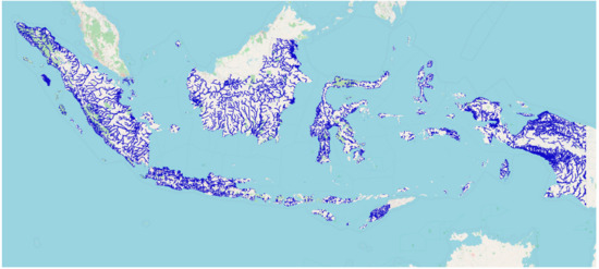 Map of major rivers in Indonesia. Map generated using QGIS software [27] and original data from the Indonesian Geospatial Information Agency [28].
