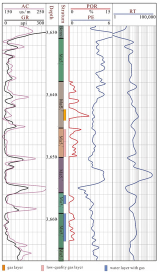 Well-log interpretation showed that the reservoir is a gas–water formation, as illustrated in Figure 3.