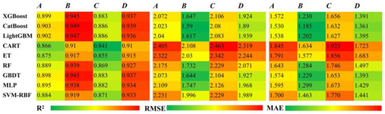 All models were run using Programming language in the Python computing environment (version 3.6). The URLs for the “XGBoost”, “CatBoost” and “LightGBM” package are: https://xgboost.readthedocs.io/en/latest/, https://github.com/catboost/catboost and https://lightgbm.readthedocs.io/en/latest/, respectively (accessed on 1 October 2020). All the computing processes were conducted using a computer with 256 GB of RAM memory and 10×Intel Xeon CPU E5 2650 @ 2.3 GHz, with a Debian x86_64 GNU/Linux operating system.