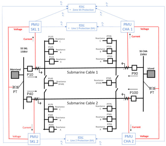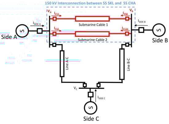 WAMPAC systems can also be employed for wide-area short-circuit protection. However, there is not much information in the literature related to this topic. Some research studies have proposed tools such as the integrated impedance angle (IIA) [14,15], which uses the positive sequence phasors of voltages and currents of the phasor measurement units (PMUs) installed at both ends of a line to protect it. It can be used in distribution and transmission systems to protect a two-terminal line. Another useful tool is the theory of the virtual bus [16] proposed as a step in the implementation of an algorithm able to calculate a wide-area voltage stability index.
