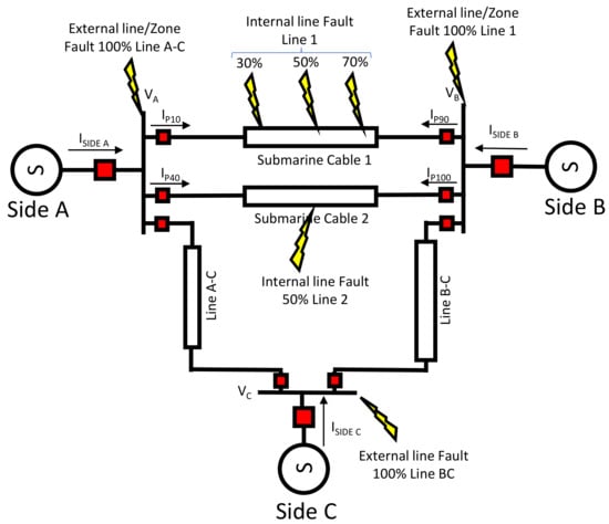 In this section, the description of the executed tests to evaluate the behaviour of the proposed method is included. The different fault locations are represented in Figure 10.