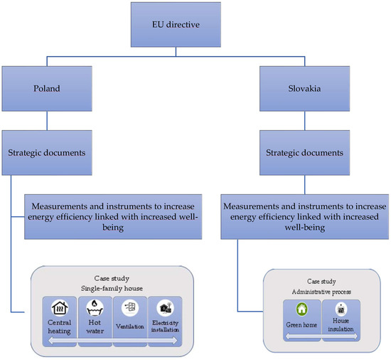 Although there are several studies and approaches focusing separately on the area of increasing energy efficiency through the use of RESs, as well as separately on the well-being of individuals, their interconnectedness and support by state policies are not sufficient and the interconnectedness is not sufficiently linked in the literature. For this reason, in this paper we focus specifically on those areas of energy efficiency policies in Poland and Slovakia that are closely linked to individuals, their housing and reducing the energy intensity of their housing. Reducing the energy intensity of housing represents not only savings on energy consumption (which is the expected effect), but also consequently higher housing comfort, higher satisfaction in terms of economic savings but also overall higher quality of life.