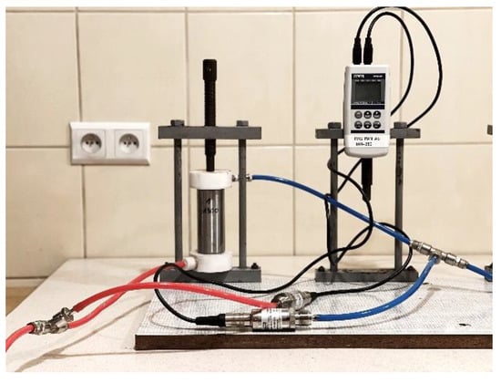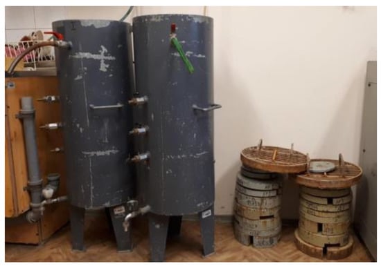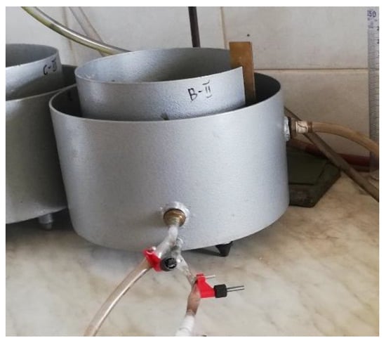 Filtration coefficient was measured using the constant gradient method, i.e., in a medium-sized permeameter (Figure 3) and in an ITB ZW K2 apparatus (Figure 4). In addition, SP2 waste samples with different seasoning periods of 3, 6, and 11 months, respectively, were tested on the ITB ZW K2 apparatus.