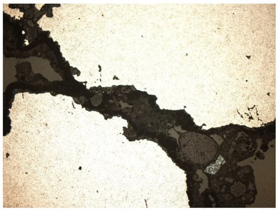 In order to characterize individual groups of slag, a description of characteristic features, microscopically identifiable, was made. An AXIOPLAN polarizing microscope by ZEISS and an XYZ computer-controlled mechanical stage were used for the analyses []. The image from the optical microscope was transmitted by a CCD camera to the monitor. Magnifications of 50, 100, and 200× were used. The tests were carried out in transmitted light (thin sections) and reflected light (polished sections and an auxiliary, also thin sections).