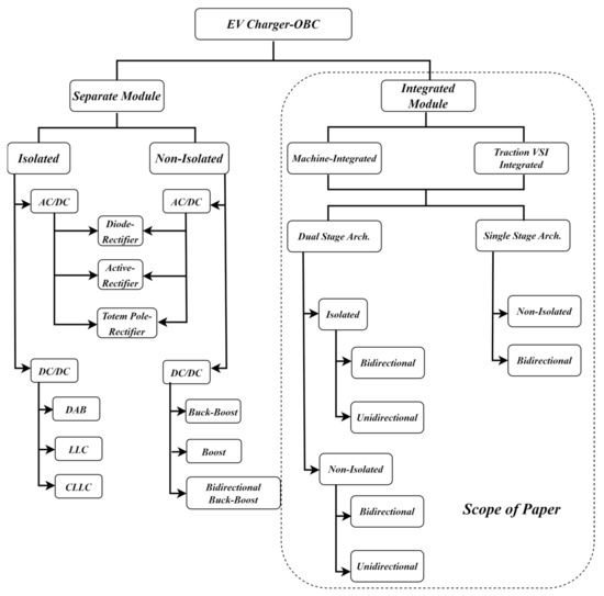 - Most of the integrated chargers are non-isolated, and authors suggested using an off-board isolation transformer. This makes the whole concept of the OBC and integrated OBC less useful, as it will limit the use of OBCs to only be used in charging stations; thus, integrated chargers with on-board isolation need to be explored.
