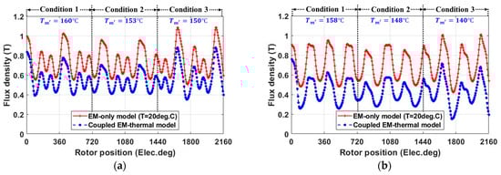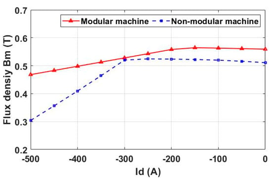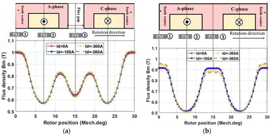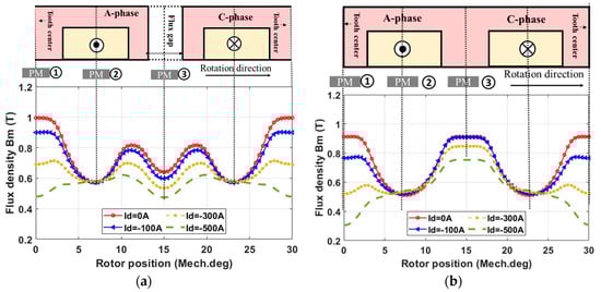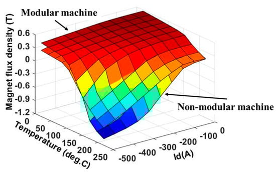 - In order to avoid the change of magnet polarity, as shown in Figure 13, the investigated machines are assumed to operate less than 30 min when they are operated under three times the rated current.