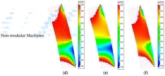 - Zhang, W.; Li, G.; Zhu, Z.; Ren, B.; Michon, M. Optimization of Modular SPM Machines Considering Stator Modularity. In Proceedings of the 2021 IEEE International Electric Machines & Drives Conference (IEMDC), Hartford, CT, USA, 17–20 May 2021; pp. 1–6. [Google Scholar]