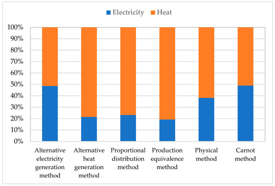 Figure 4 shows the distribution of fuel consumption between the two forms of useful energy generated (heat and electricity) using the allocation methods.