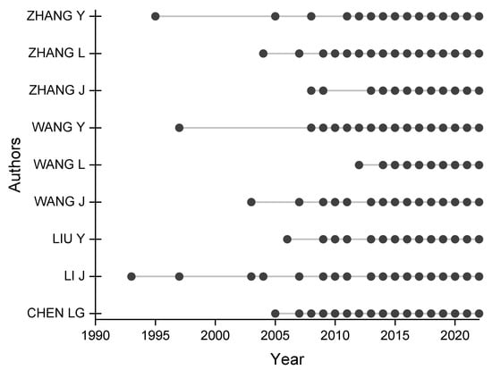 Figure 7 shows when each author provided literature in this field. There were authors who were working from 1993 and 1995.
