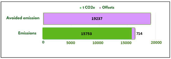 Similarly, because of the Renewable Energy Certificate System purchased by the University of Bologna, the avoided emissions were not subtracted from the total in this case to avoid double counting. Therefore, it is simply said that this activity avoided 19,237 t CO2e because: