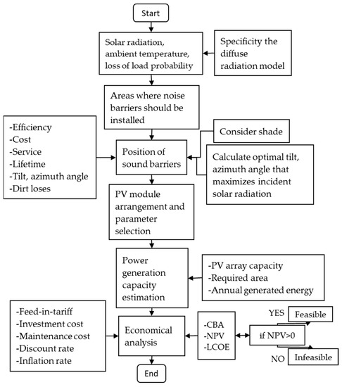 In this study, a design method has been developed that integrates the solar energy technology sampled in the Kaman district into noise barrier solutions. In the study, a highway with heavy vehicle traffic is discussed. The proposed method for the case study can be divided into two phases (PV&radiation model and Cost&Benefit model) and the flowchart showing the steps is presented in Figure 3.