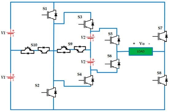 - Hosseinzadeh, M.A.; Sarbanzadeh, M.; Sarbanzadeh, E.; Rivera, M.; Wheeler, P. New Asymmetric Cascaded Multi-level Converter with Reduced Components. In Proceedings of the 2018 IEEE International Conference on Electrical Systems for Aircraft, Railway, Ship Propulsion and Road Vehicles & International Transportation Electrification Conference (ESARS-ITEC), Nottingham, UK, 7–9 November 2018; pp. 7–12. [Google Scholar] [CrossRef]