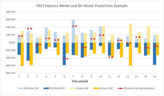 The Flexible Ramp Sufficiency Test (FRST) is one of the four Resource Sufficiency Tests [6,7]. This test establishes the minimum amount of INC and DEC reserves a participant must bid into the market in order to participate. Participants can bid more if they choose. This test is the focus of the analysis in this paper. The FRST, specifically the uncertainty component of the FRST, currently requires a participant to bid an amount of DEC capacity equal to the 2.5 percentile of “observed net load imbalance” (which is Variable 1, the dependent variable, defined further in the section titled “Data”) for that participant, for the given hour, over the prior 40 weekdays, and to bid an amount of INC capacity equal to the 97.5 percentile over the same period. For weekends, the 2.5 and 97.5 percentiles are determined for the given hour, from the prior 20 weekend days [7]. Setting the threshold at this level assumes that recent historical observations of net load imbalance are a good predictor of the potential range of imbalance in a coming hour. The goal of this approach is to create an INC and DEC upper and lower bound to ensure each participant is bringing enough INC and DEC capacity to support their historical net load imbalance. This approach is referred to as the Industry Model throughout the paper.