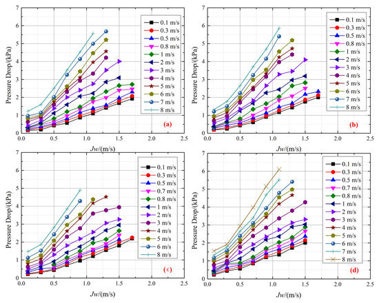 Also, when the conversion velocity of air is small, the flow is basically in bubble flow, and the ΔPf is small. The additional force generated by vibration shows little impact on the air–water fluid, so the ΔPf changes slightly.