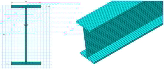 Cross-sectional dimensions (left graph) and beam meshing scheme (right graph).