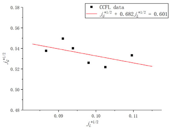 - Assuming the correlation obtained for the experimental test conditions is still valid and applicable for the operating conditions of the pressurizer, where the pressure is 155 bar (a), and the corresponding saturated temperature is 617.95 K, when CCFL occurs, the condensate drainage flowrate is estimated to be 2.95 kg/h.