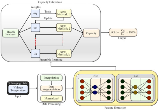 - Wu, J.; Chen, J.; Feng, X.; Xiang, H.; Zhu, Q. State of health estimation of lithium-ion batteries using Autoencoders and Ensemble Learning. J. Energy Storage 2022, 55, 105708. [Google Scholar] [CrossRef]