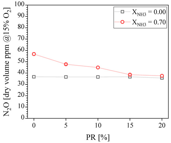 Measured N2O concentration in the exhaust gases as a function of the PR.