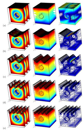 - Jassim, H.M.; Ali, F.H.; Mahdi, Q.A.; Hadi, N.J. Effect of parallel and orthogonal sinusoidal walls on mixed convection inside square enclosure containing rotating cylinder. In Proceedings of the 2017 8th International Conference on Mechanical and Aerospace Engineering (ICMAE), Prague, Czech Republic, 22–25 July 2017; pp. 365–370. [Google Scholar] [CrossRef]
