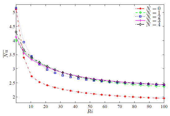 - Khanafer, K.; Aithal, S. Mixed convection heat transfer in a lid-driven cavity with a rotating circular cylinder. Int. Commun. Heat Mass Transf. 2017, 86, 131–142. [Google Scholar] [CrossRef]