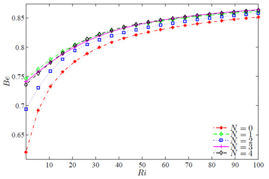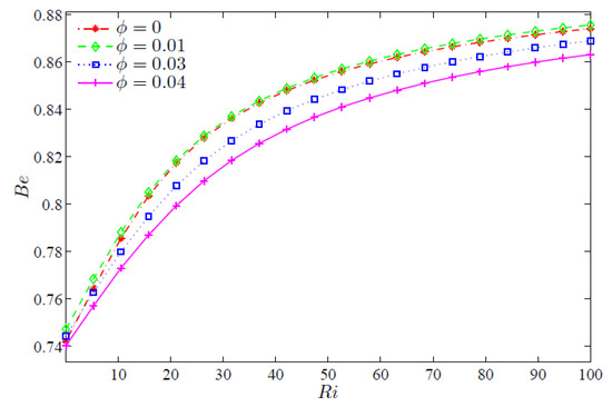 - When the heat transfer is irreversible, the Bejan number is formed by increasing the Richardson number.