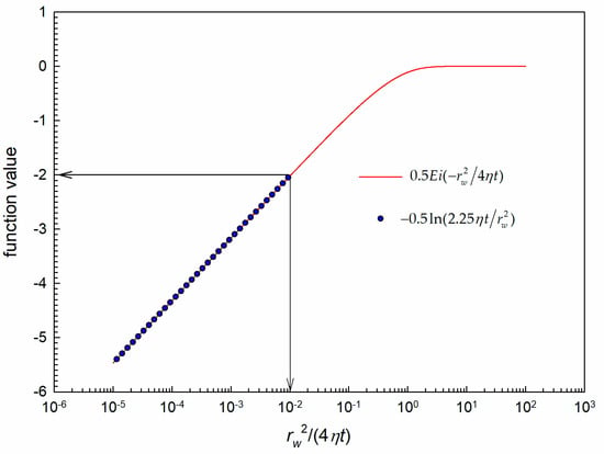 The exponential integral function Ei(−x) is inconvenient for practical use, when 0 < x ≤ 0.01, Ei(−x) can be approximated as the following form with high accuracy (see Figure 3).