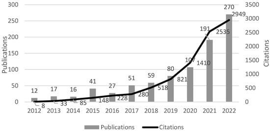 There has been a systematic increase in the number of publications in the analysed period starting already from 2017 when 51 such works were published. In 2021, the WoS database indexed 191 publications, and a further 270 appeared by the end of September 2022. In line with the growing number of publications, one could also observe an increase in the number of their citations, from 280 in 2017 to 2535 in 2021 and up to 2970 in the first three quarters of 2022 (