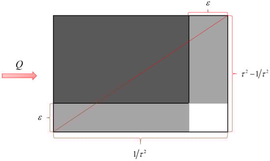 The rectangle shown in Figure 3 is made up of Figure 2B,C where the real length of the fluid path is the length of the diagonal Lt. The weight coefficient of the parallel part can be expressed in terms of the length of the rectangle, and the weight coefficient of the series part can be expressed in terms of the width of the rectangle.