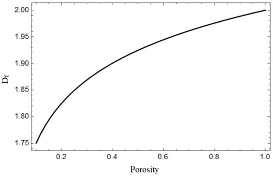 An essential parameter to characterize the spatial irregularity of the porous materials is the area fractal dimension of the pore surface, which is defined as the effective space occupied by the complex cross-section shape of the porous materials [12]. It can be obtained from Equation (22) that both the porosity and pore diameter distribution have a significant influence on the area fractal dimension.
