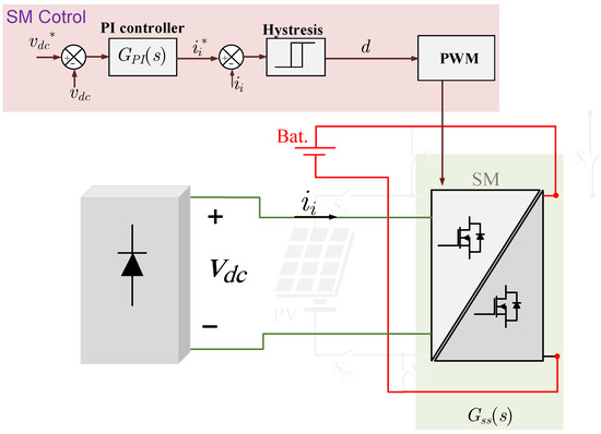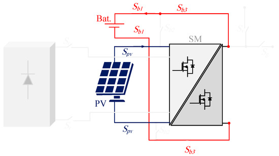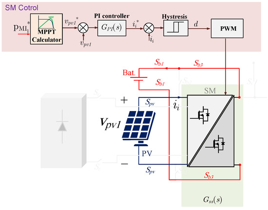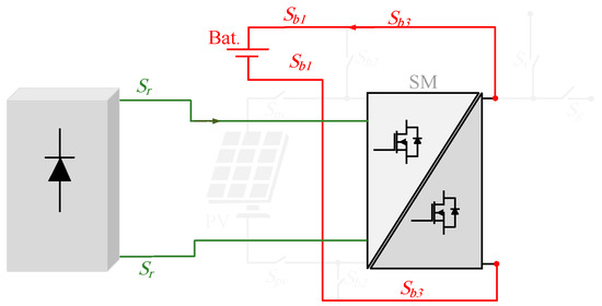 Figure 14 shows the SM connection to the PV modules in order to perform Mode 2. Because the SM is still operating as a dc/dc converter, the state-space representation, as well as the modulation scheme are the same as the previous mode. However, the control scheme is slightly different because the inputs of the SMs are connected to PV modules.