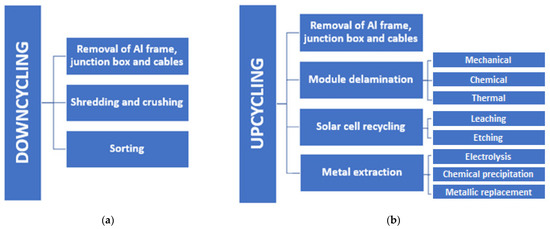 Figure 3. Methods of the crystalline PV modules recycling: (a) downcycling; (b) upcycling.