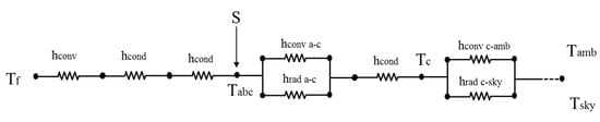 is the diffusion coefficient of glass, is the Stephen Boltzmann’s constant, Tc is the glass coating temperature, and Tsky is the sky temperature. The sky temperature is 6 degrees Celsius lower than the ambient temperature [68,69].