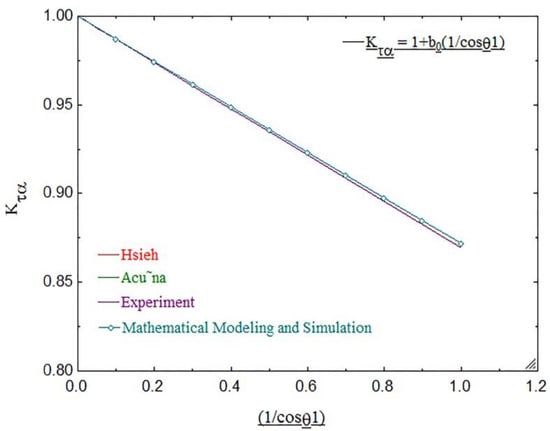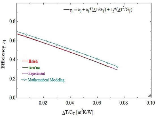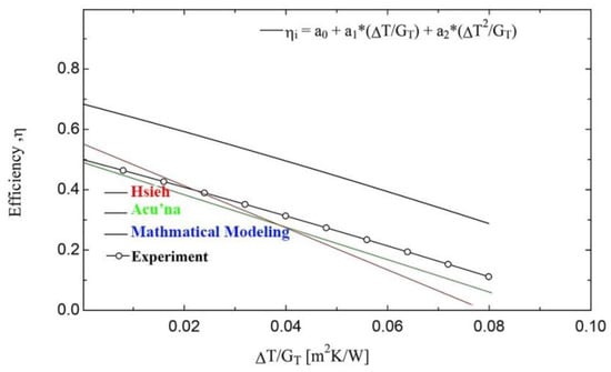 The first method is to use the relation of the total heat loss coefficient UL. Hsieh (1983) used a CPC solar collector to obtain a relation for determining the total heat loss coefficient. The total heat loss coefficient UL can be calculated from it [4,57,71]: