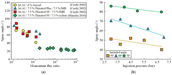 - Kim, H.; Ko, T.; Kim, S.; Yoon, W. Spray Characteristics of Aluminized-Gel Fuels Sprayed Using Pressure-Swirl Atomizer. J. Non-Newton. Fluid Mech. 2017, 249, 36–47. [Google Scholar] [CrossRef]