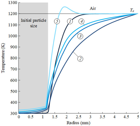 At the fifth and sixth stages, the velocities of the fuel particles are, as a rule, the same. It was registered [45,112,113,114,115] that under the conditions of evaporation and combustion of fuel particles when they move through the combustion chamber at a speed of 20 m/s for 1 s, the shear rate is 2 × 105 s−1.