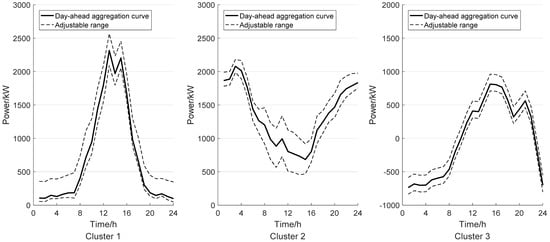 Day−ahead aggregation curve and adjustable range of each cluster.