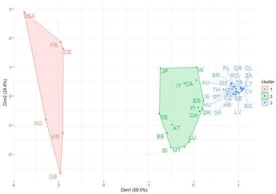 In Table 2, economically developed countries are distinguished, as the top 10 countries with the highest absolute number of charging stations. A significant development of electromobility is observed in highly developed countries, with a long history of the technological progress and discoveries [,]. For developing countries, there are no relevant data or the numbers are relatively small. This raises the research question of what influences EV development presented in the Section 1 of this paper.