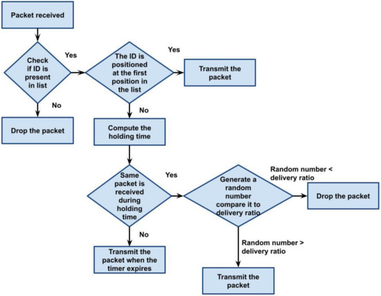 The forwarder determines the candidate node’s distance from both the forwarder and the sink for each transmission. The priority rises with decreasing value. The highest priority node in each forwarder set is the first to be enlarged, followed by nodes whose distances are less than the node transmission radius (Cr), and finally, nodes in the Ci whose distances are less than the communication radius for all nodes already present in the cluster. The forwarder chooses the highest priority set as the next-hop forwarder set after performing the calculation. If the highest priority set is unable to transmit, the remaining forwarder set will only transmit the packets in order.