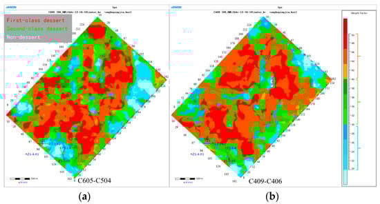 Sweet-spot map based on coal seam CBM content: (a) C605-C504; (b) C409-C406.