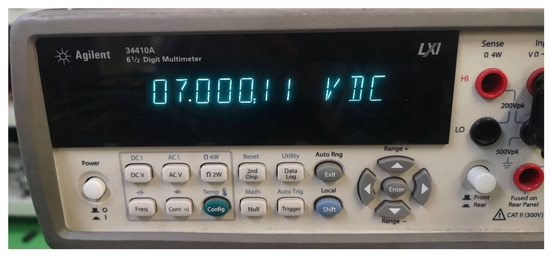 The test value of the output high voltage obtained by a digital multimeter is shown in Figure 12. The digital multimeter performs measurements with a 1000:1 probe, so the test value is 7.00011 V DC.