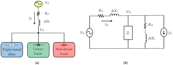 The direct triple-tuned filter (DTTF) mathematical model has never been presented in literature because of its complex mathematical formulations. The DTTF can be represented by adding an additional tuning circuit to the double-tuned filter, as shown in Figure 3.